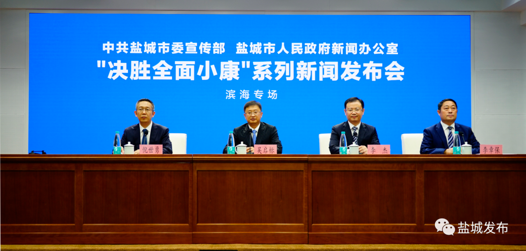 今天(8月26日)上午,由中共盐城市委宣传部、盐城市人民政府新闻办举行的“决胜全面小康”系列新闻发布会——滨海专场在盐城市新闻发布厅举行。滨海县委副书记、代县长吴启标介绍了滨海县近年来项目建设、沿海开放、城乡统筹、民生事业等方面的有关情况。滨海县相关负责同志出席发布会,共同回答记者提问。